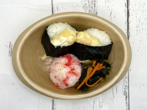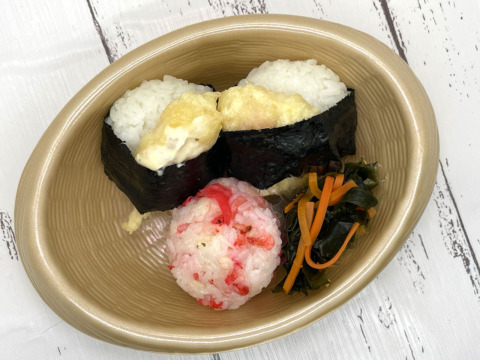 エビ天むす3種[約170g]/味付け玉子/わかめと人参の酢の物