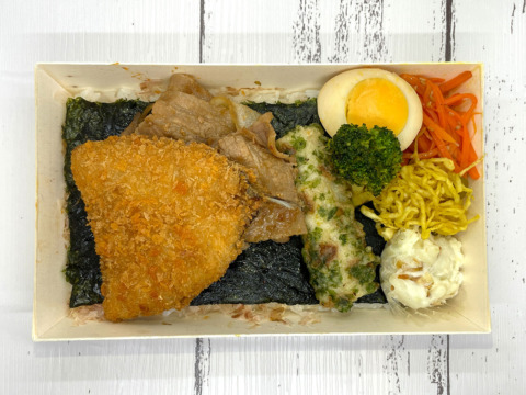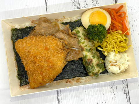 アジフライ タルタル&ソース/豚の生姜焼き/梅おかかのポテトサラダ/にんじんの塩きんぴら/切り干しカレー南蛮/お出汁のきいたブロッコリーの黒胡椒炒め/ちくわの磯部揚げ/黒酢の味付け玉子/海苔(有明海産)/鰹節(鹿児島県産近海一本釣りカツオ)/ご飯(山形県産ひとめぼれ)[約200g]