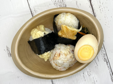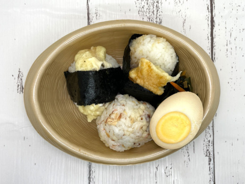 さば天むす3種/味付け玉子/わかめと人参の酢の物