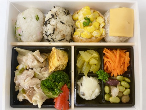 「C:おかかチーズのおにぎり・コーンマヨのいなり寿司・ごぼうひじきのおにぎり・さくらにぎり」